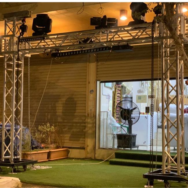 إطار مسرحي مصنوع من الألمونيوم يتيح لمصممي الإضاءة حرية تعليق تركيبات LED أو تركيبات آلية الفيديو أو الصوت أو غيرها من معدات التدريج بسهولة، شديد المتانة وخفيف الوزن يسهل نقله، هو الإختيار الأمثل للإستخدام في الحفلات الموسيقية أو الإنتاج المسرحي. يسمح وزنه بإعداده وتفكيك سريع وسهل.أرجل مدعمة في الأرضية لاتهتز شديدة الثبات لاتهتز والتحمل لآلات التركيب.