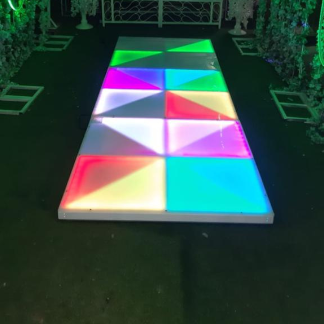 أرضية حفلات مضاءة من ألوان مبهجة للمناسبات الخارجية وقاعات الإحتفلات والمسارح، تتميز بالمتانة والقوة شديدة التحمل للحركة والرقص، لاتنكسر، بقوة إضاءة فائقة التوهج، سهلة الإستخدام والتخزين، يمكن العناية بها وتنظيفها بسهولة.