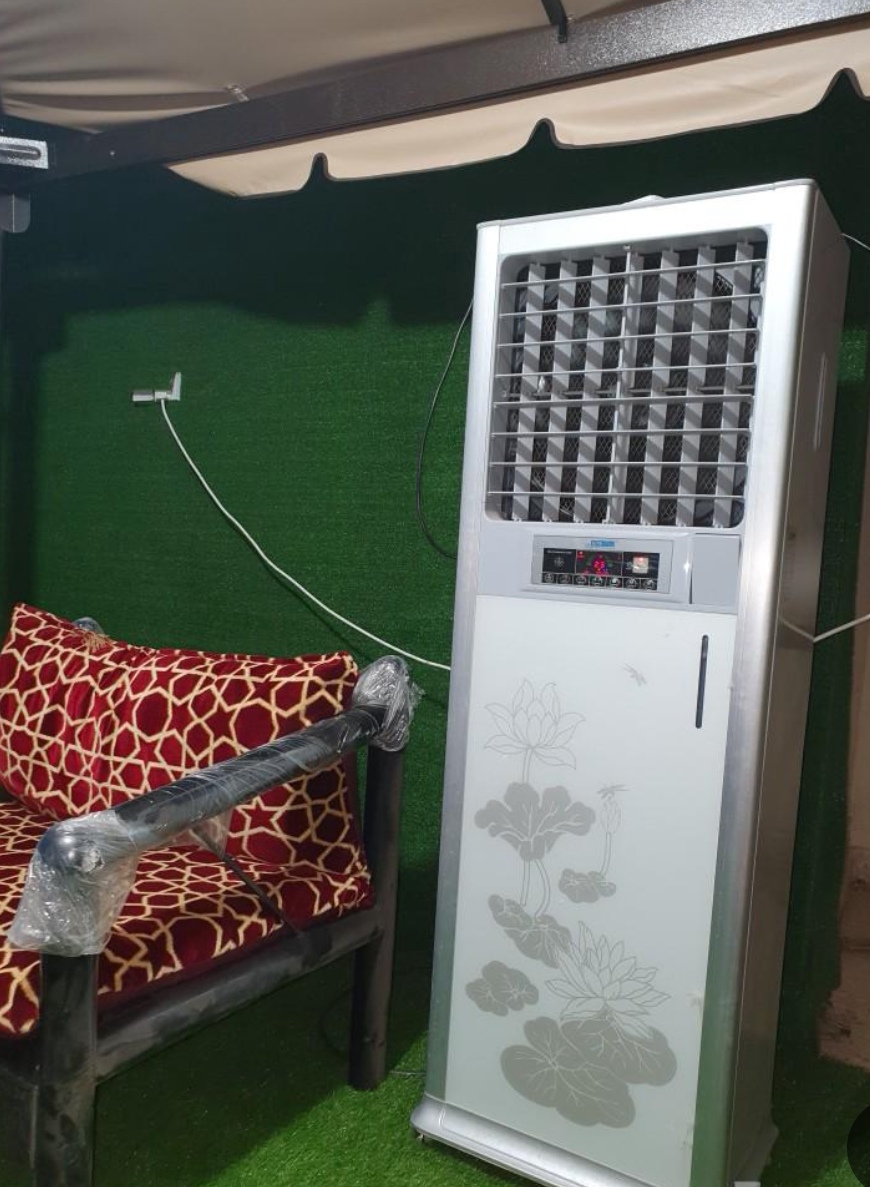 A air conditioner for dry and hot weather • characterized by its light weight, reaching about five and a half kilograms. It can be transported easily. • provides healthy moist air through the process of air recycling and filtering. • features a remote control that facilitates remote control. It features two cooling speeds Power: 220 watts • tank capacity reaches up to 20L, suitable for home or hotel use and indoor and outdoor occasions.