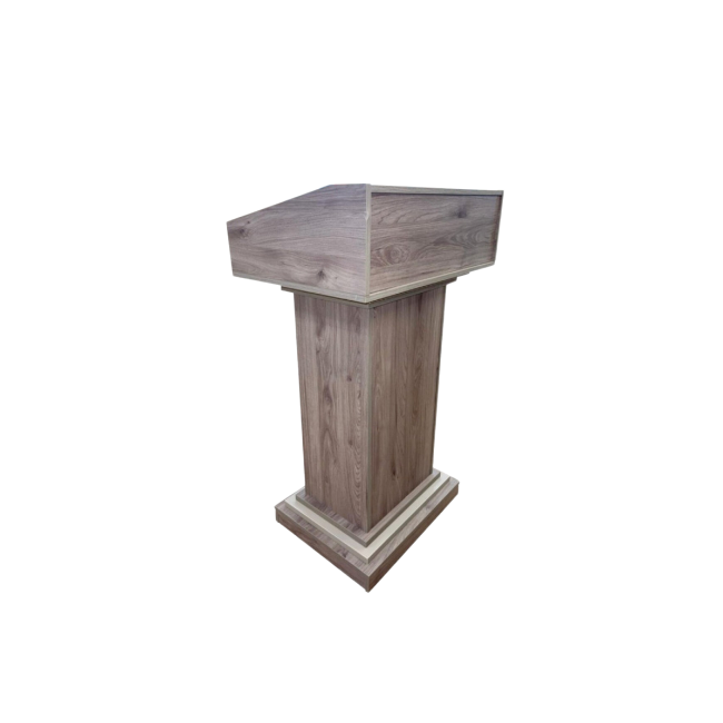منبر خشبي للخطاب والعروض التقديمية، مدعم بقاعدة سميكة ثابتة تمنع إهتزازها أثناء الاستخدام ، يتميز بتصميم خشبي أنيق يتلائم مع أي ديكور، تنتهي المنصة بإطار في الجزء السفلي من السطح لمنع الورق والأجهزة الإلكترونية من الانزلاق، سهلة التحريك والتركيب، مصنوعة من خشب قوي مقاوم للماء والرطوبة وليس من السهل خدشها، مناسب للمكاتب والمناسبات التقديمية والإجتماعات والمدارس .