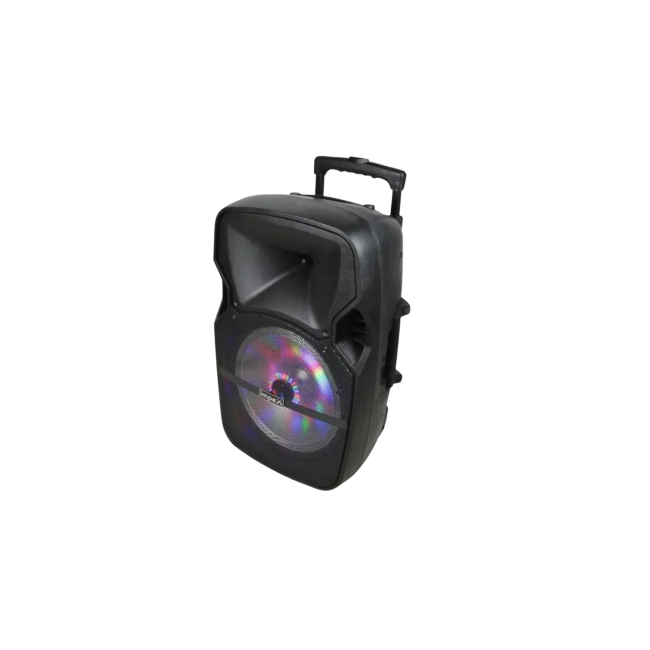 سماعة بلوتوث، مكبر صوت محمول مع أضواء LED ، إدخال USB / sd ، بطارية قابلة للشحن, جهاز التحكم عن بعد، يوجد معها ،ميكروفون اللاسلكي، تتميز هذه السماعة بتأثيرات الضوء حول مضخمات الصوت، يمكنها تقديم صوت مثالي دون فقدان الجودة، يمكن التنقل بها بسهولة مدعمة بمقبض ساحب وقاعدة مستوية، مناسبة للمناسبات الداخلية والخارجية وأعياد الميلاد والحفلات الفندقية