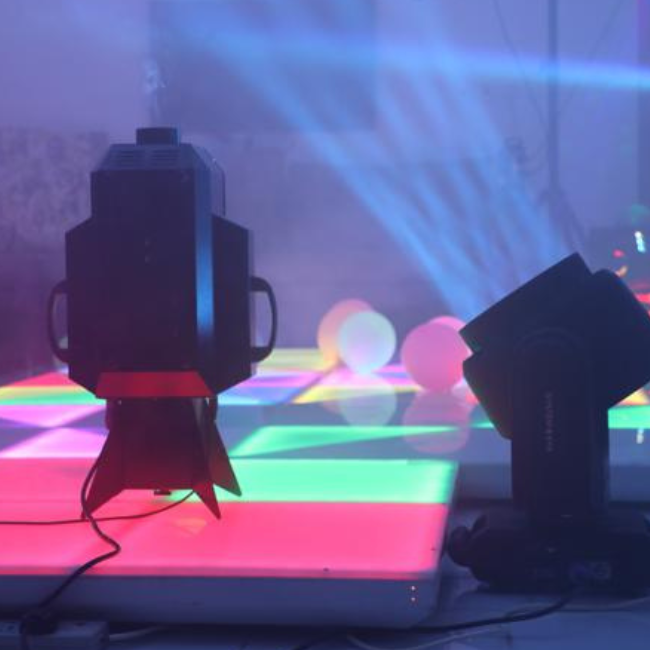 أرضية حفلات مضاءة من ألوان مبهجة للمناسبات الخارجية وقاعات الإحتفلات والمسارح، تتميز بالمتانة والقوة شديدة التحمل للحركة والرقص، لاتنكسر، بقوة إضاءة فائقة التوهج، سهلة الإستخدام والتخزين، يمكن العناية بها وتنظيفها بسهولة.